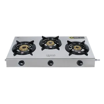 Croma 3 Burner Manual Gas Stove (Stainless Steel, Silver)