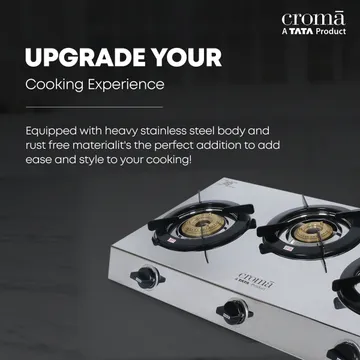 The Croma manual gas stove features uniquely designed pan support that ensures stability for your cookware. The ABS unbreakable knobs offer long-lasting durability, resisting wear and tear for a smooth cooking experience. Additionally, the anti-skid rubber legs keep the cooktop firmly in place, providing extra safety during use.