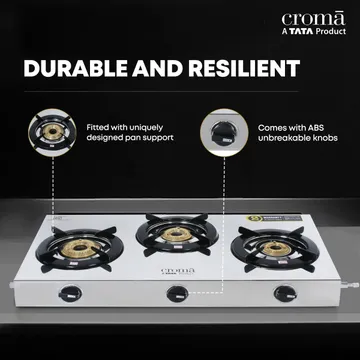 Be the first to review “Croma 3 Burner Manual Gas Stove (Stainless Steel, Silver)”