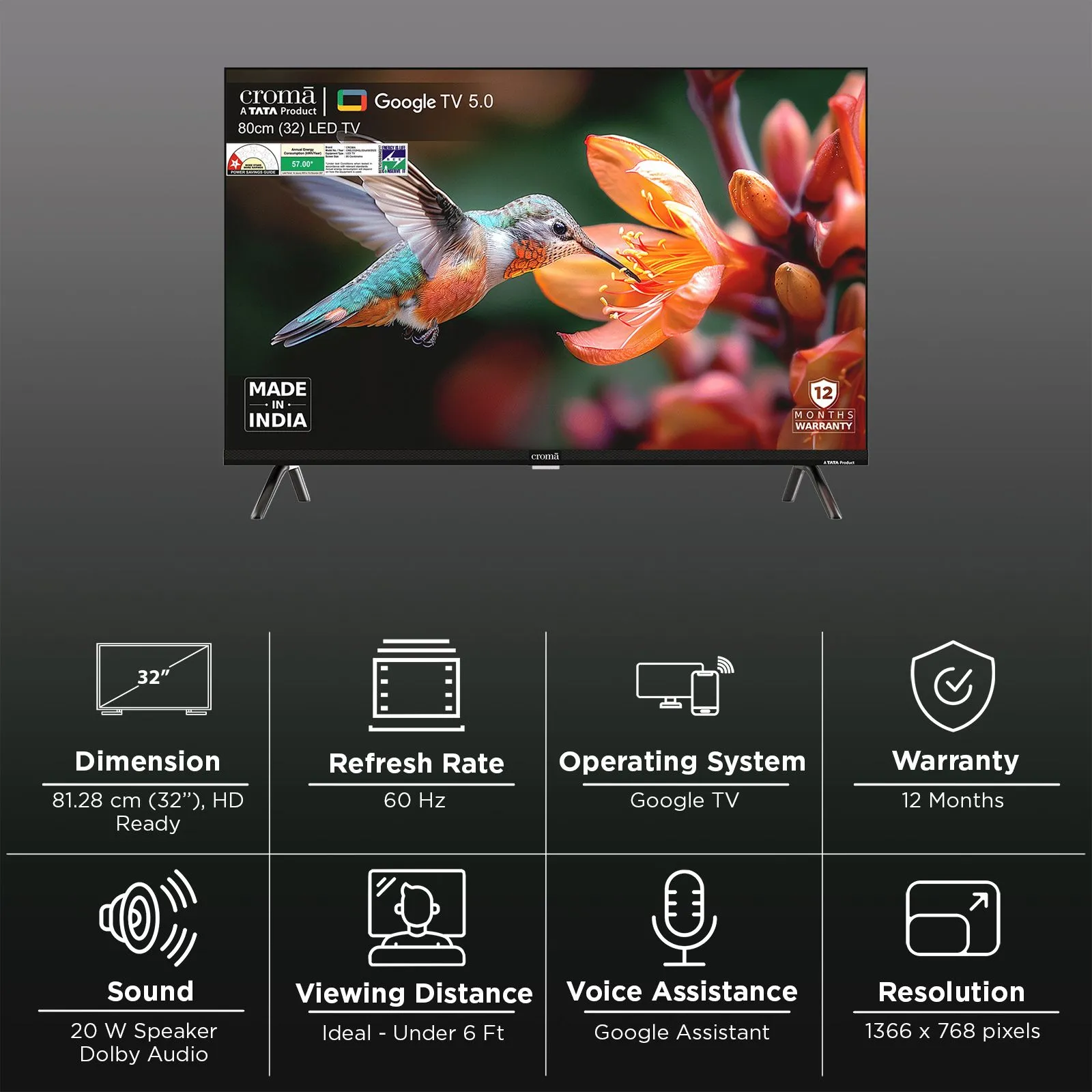 ๐บ Croma 32โ HD Google TV (Model: CREL032HGL024651) โ 2025