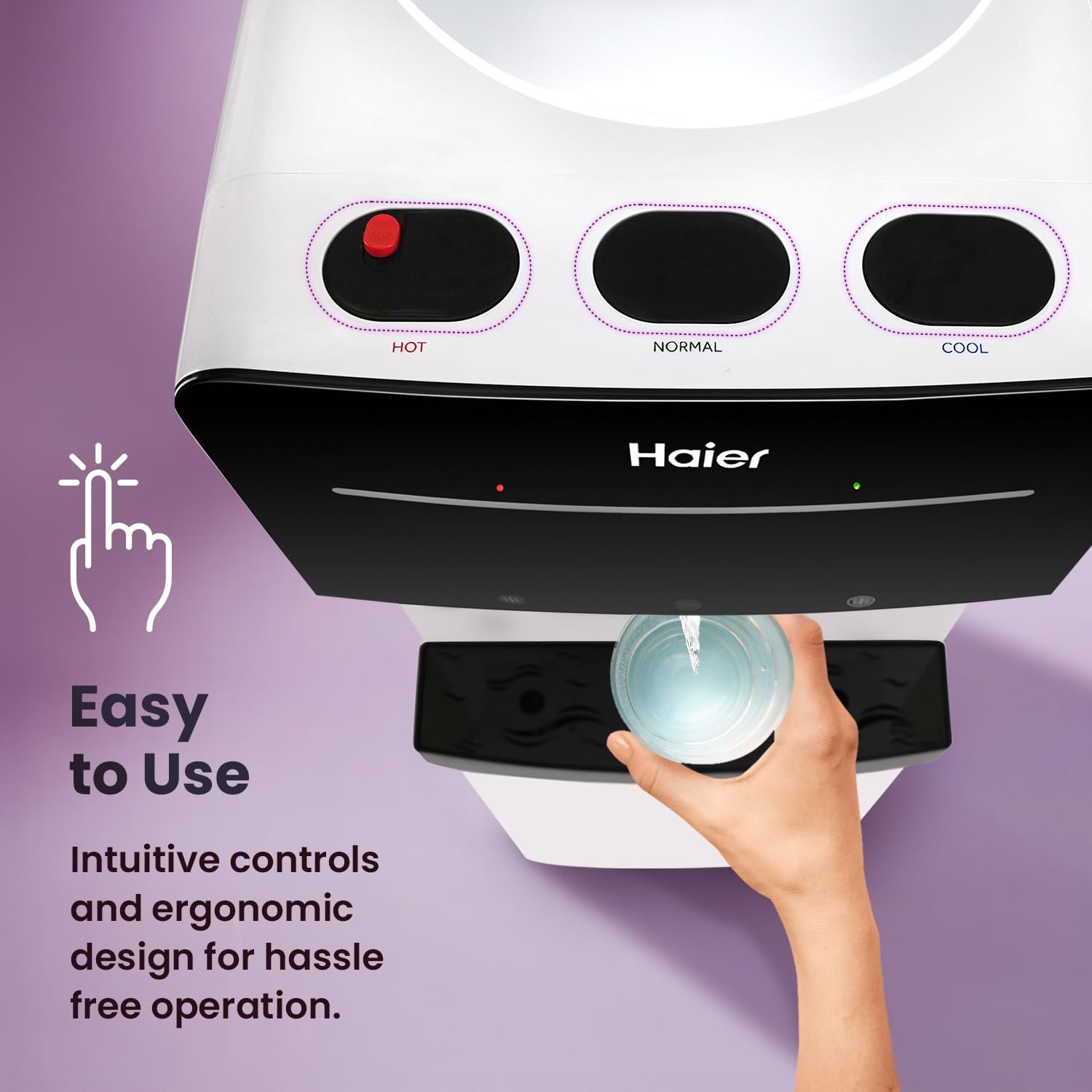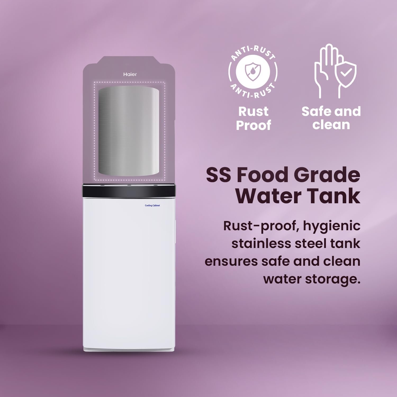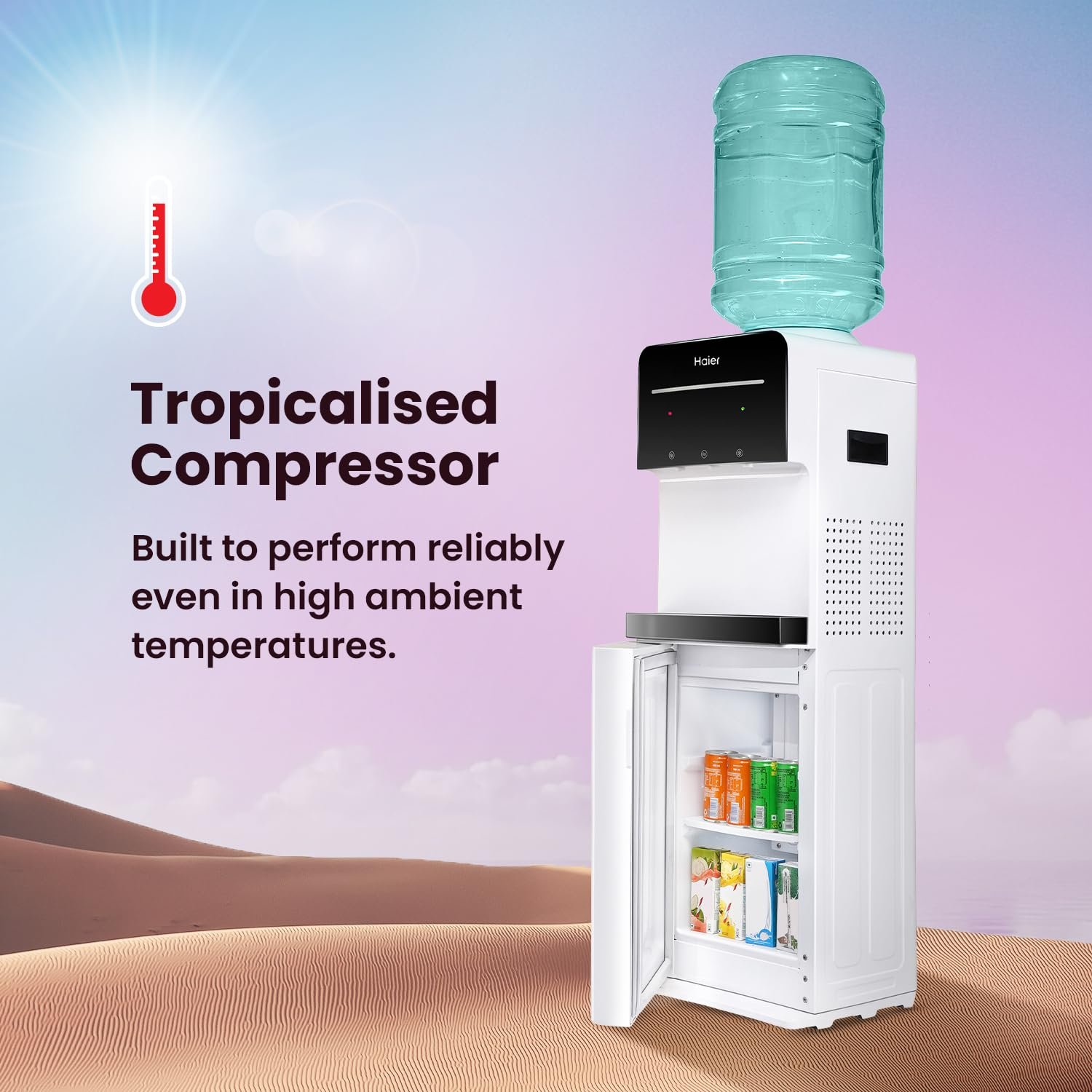 Haier Hot, Cold, Water Dispenser with Cooling Cabinet, Floor Standing Water Dispenser (Black & White) Pro