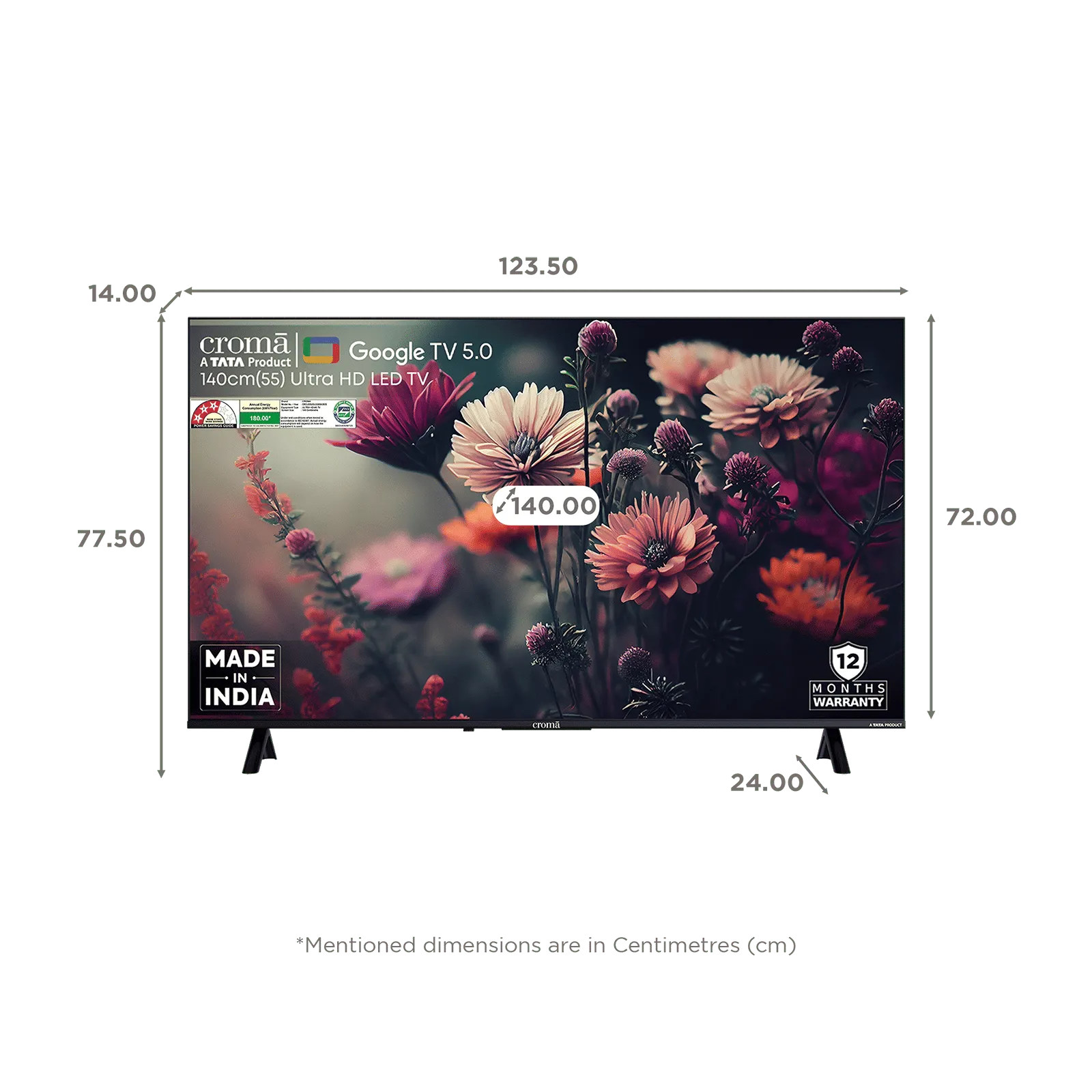 With a sleek and slim design, this TV fits elegantly in modern interiors and enhances the aesthetic appeal of your living room. Furthermore, its minimalist bezels and stylish finish make it a visual centrepiece while blending seamlessly with your home decor.