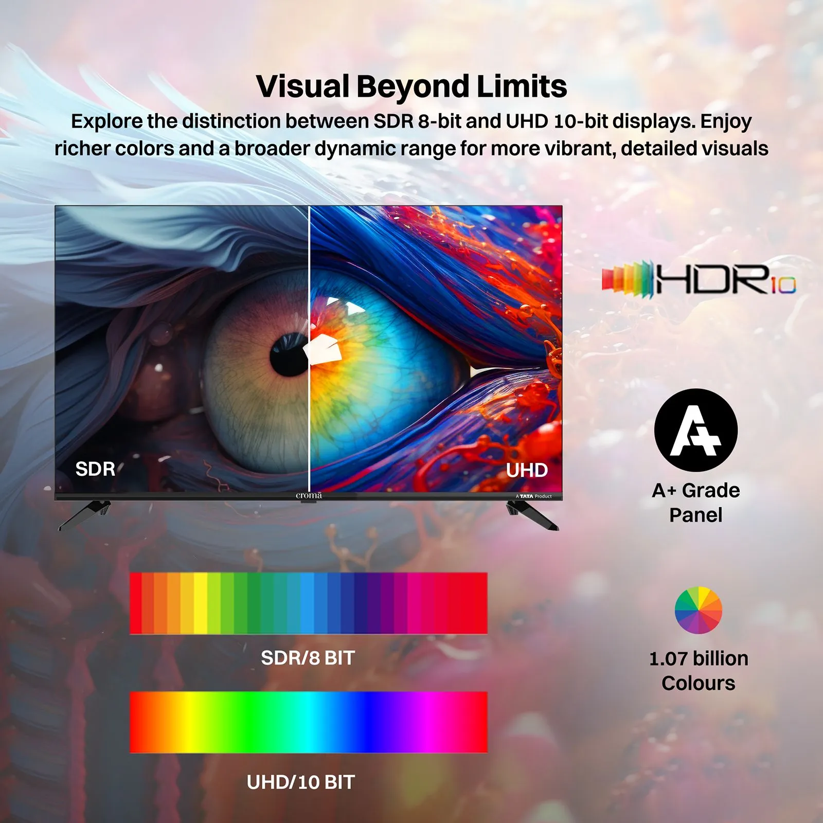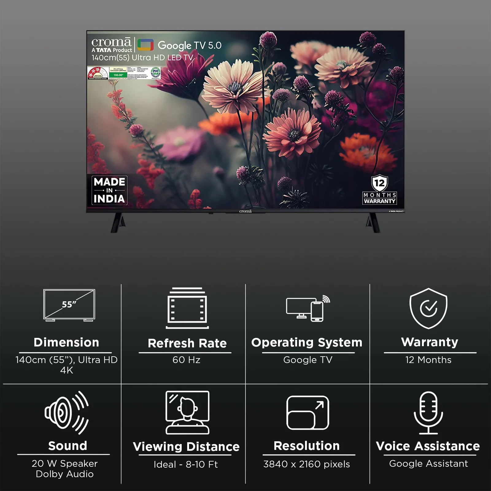 Featuring a large 4K UHD panel, this Croma 55UGL333850 55-inch Smart TV delivers sharp, detailed visuals with vibrant colours, enhanced contrast, and exceptional clarity. Hence, whether watching movies, streaming shows, or gaming, every scene appears immersive, lifelike, and visually engaging for a cinema-like experience at home.