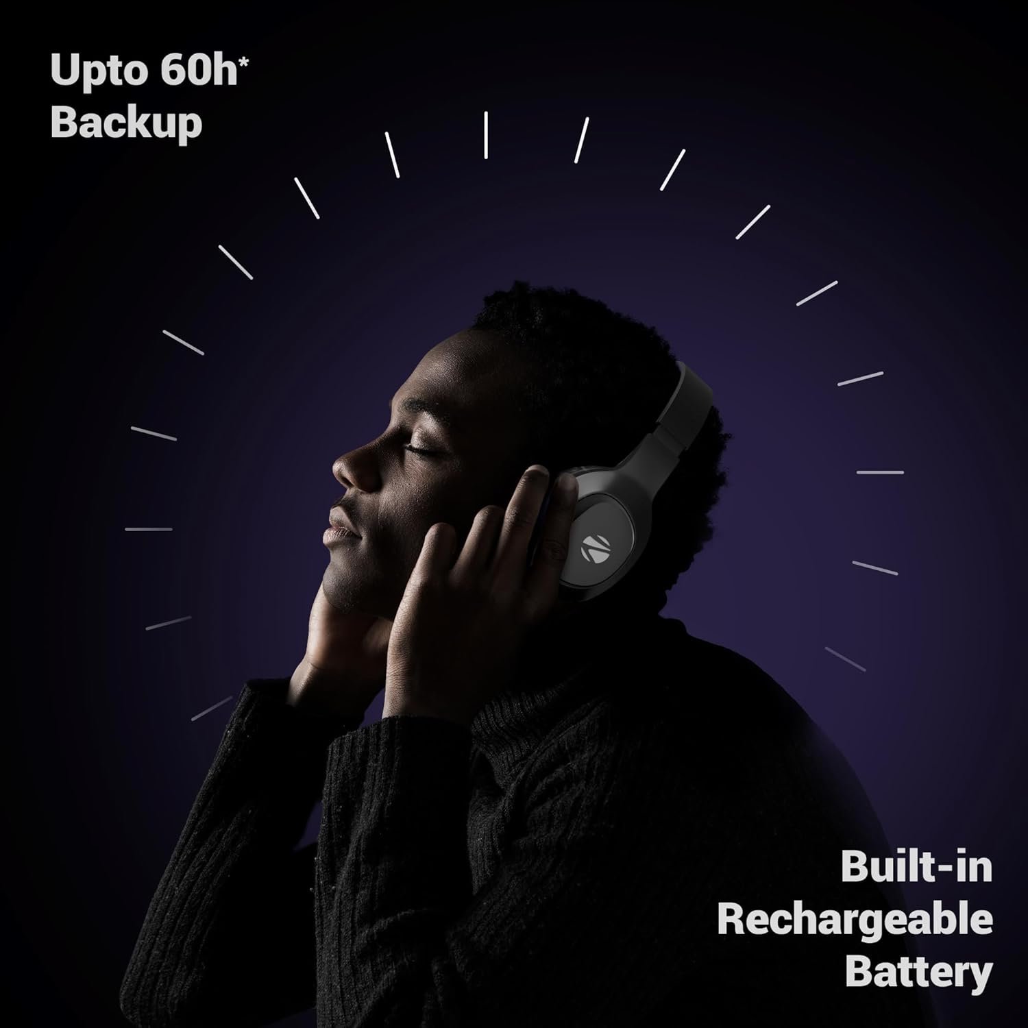 ZEBRONICS Thunder NEO, Wireless Over Ear Headphone, Upto 60 Hours Backup, Gaming Mode, Dual Pairing, Rapid Charge, BT v5.4, AUX, 3 EQ Modes, ENC for Callling, Voice Assistant, Deep Bass